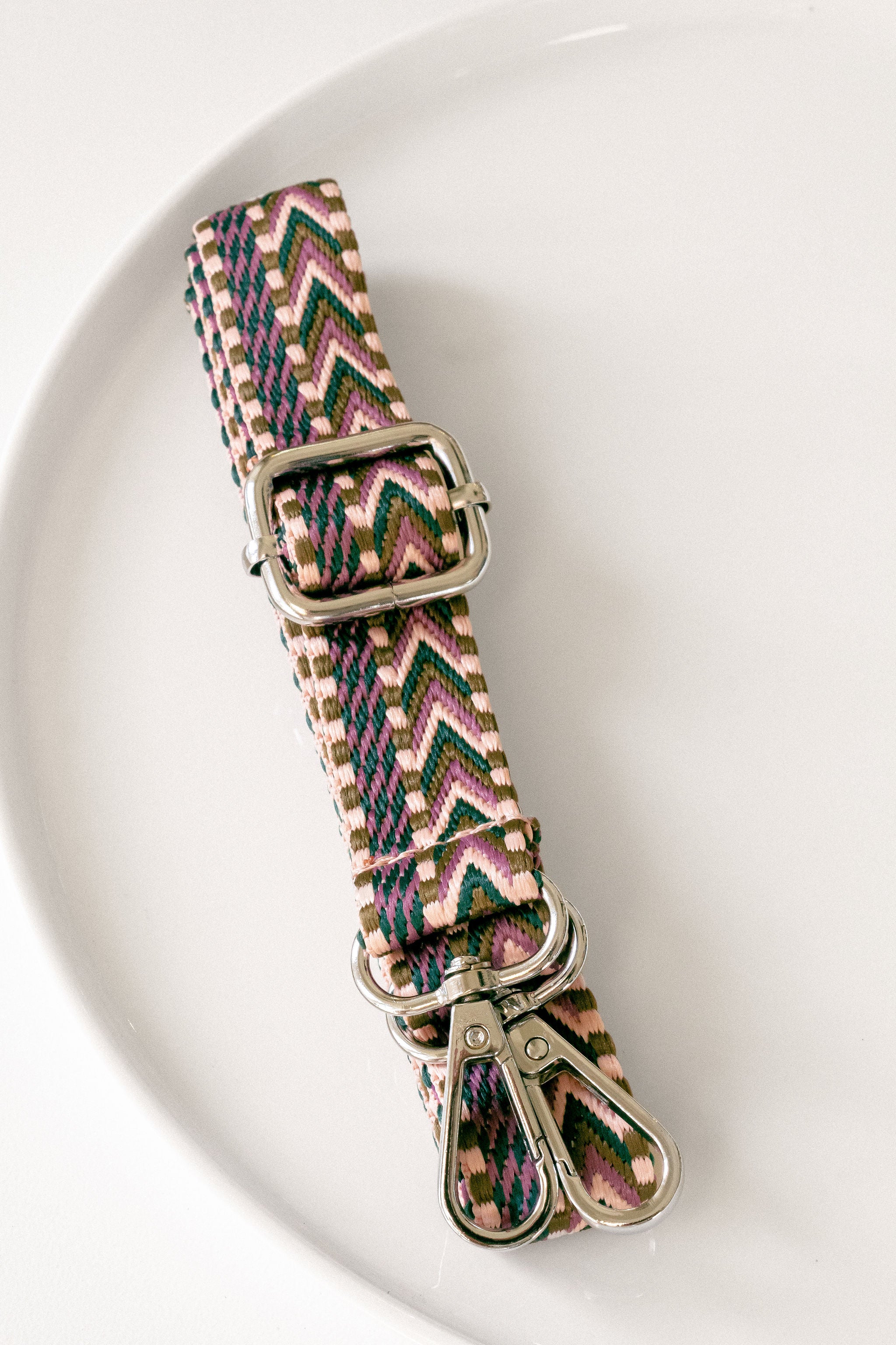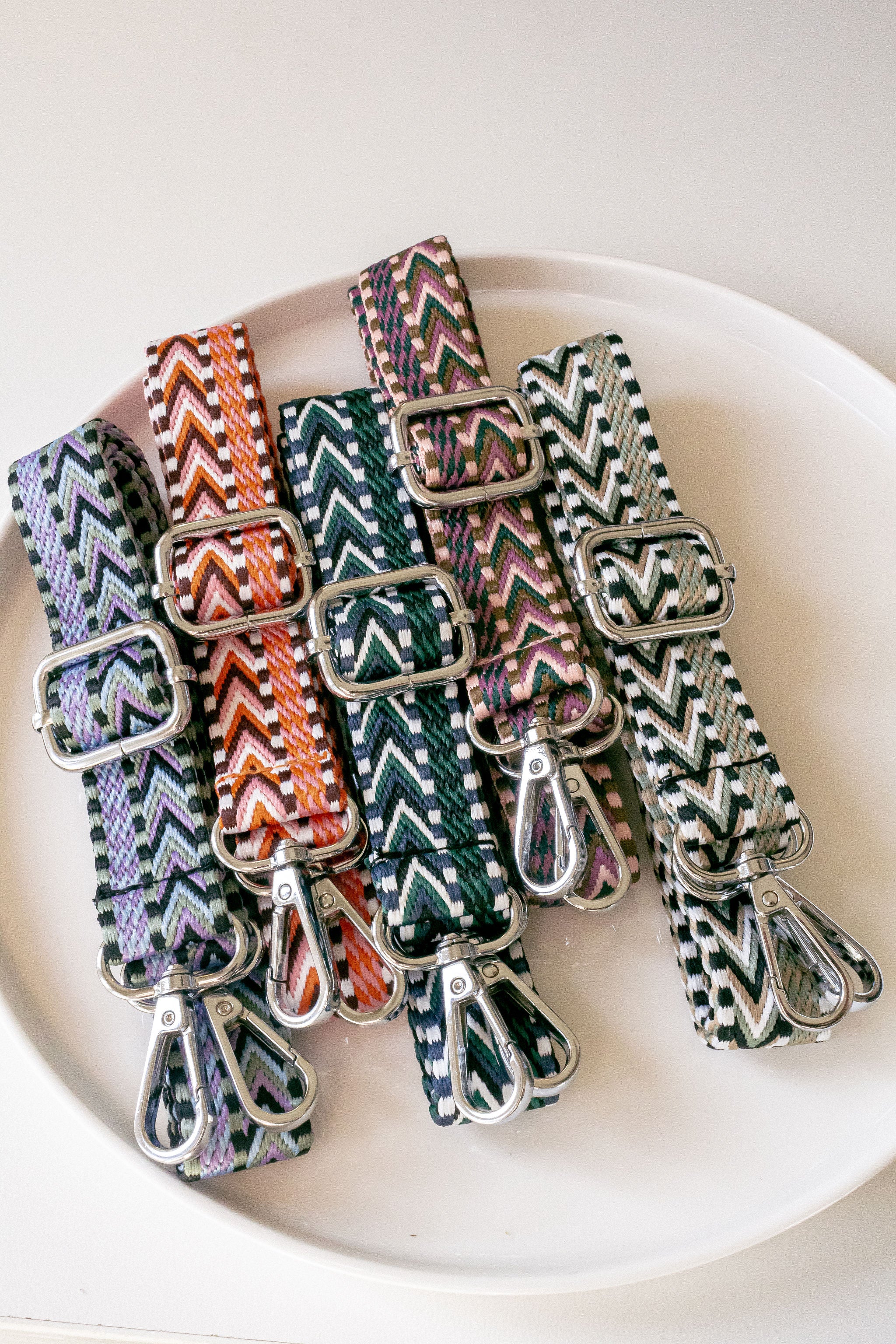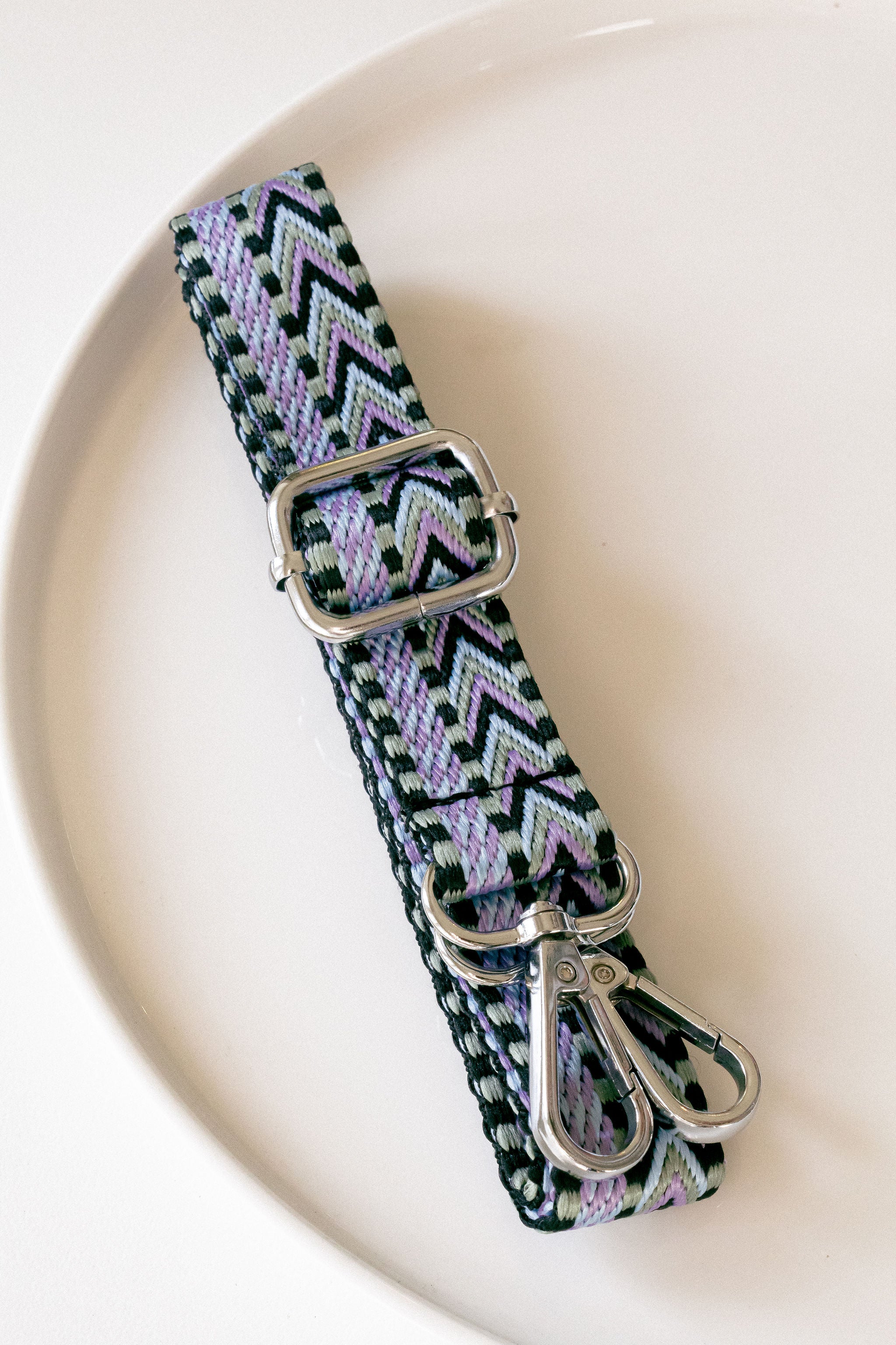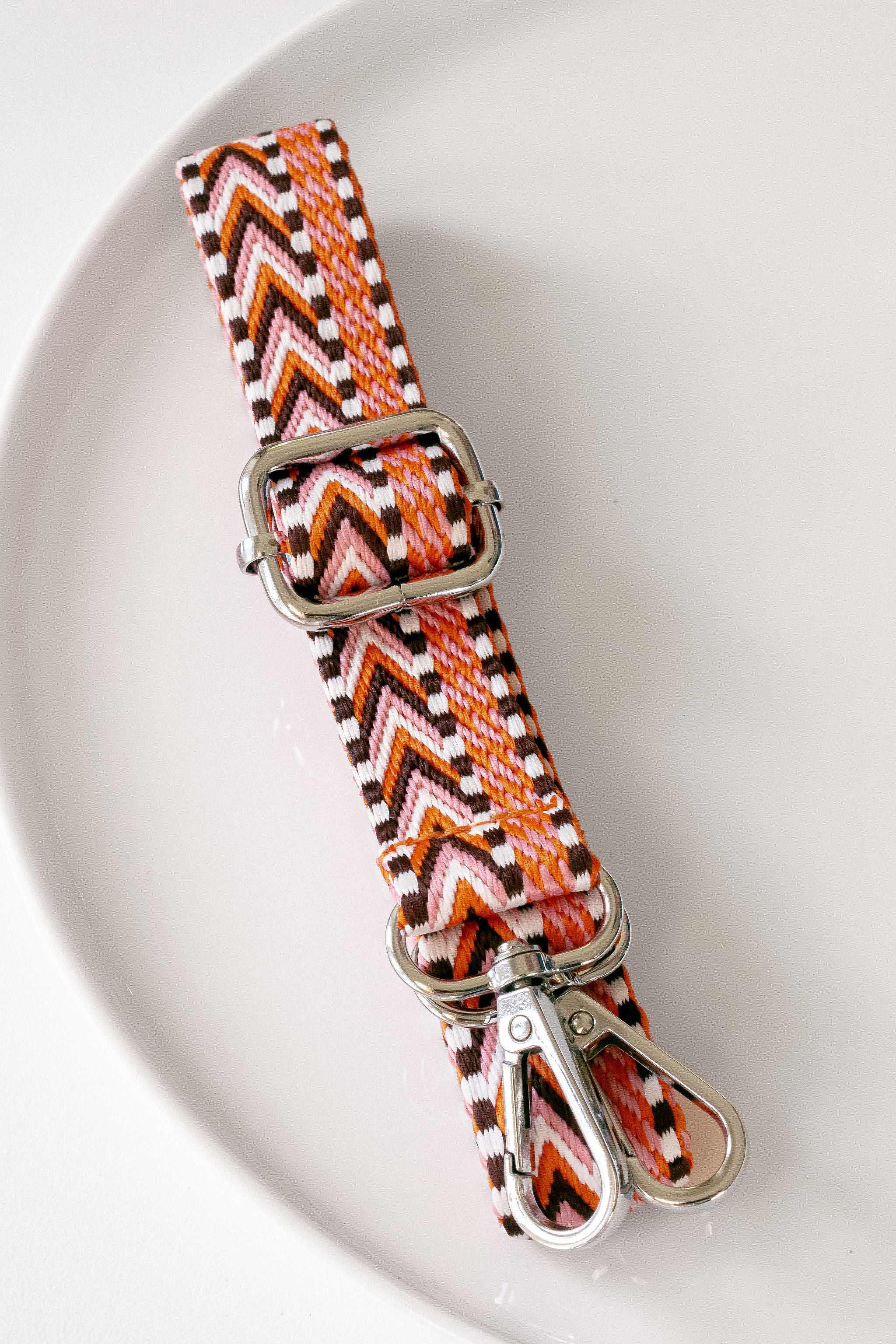 A half diamond and striped detailed handbag strap available in a variety of colours.