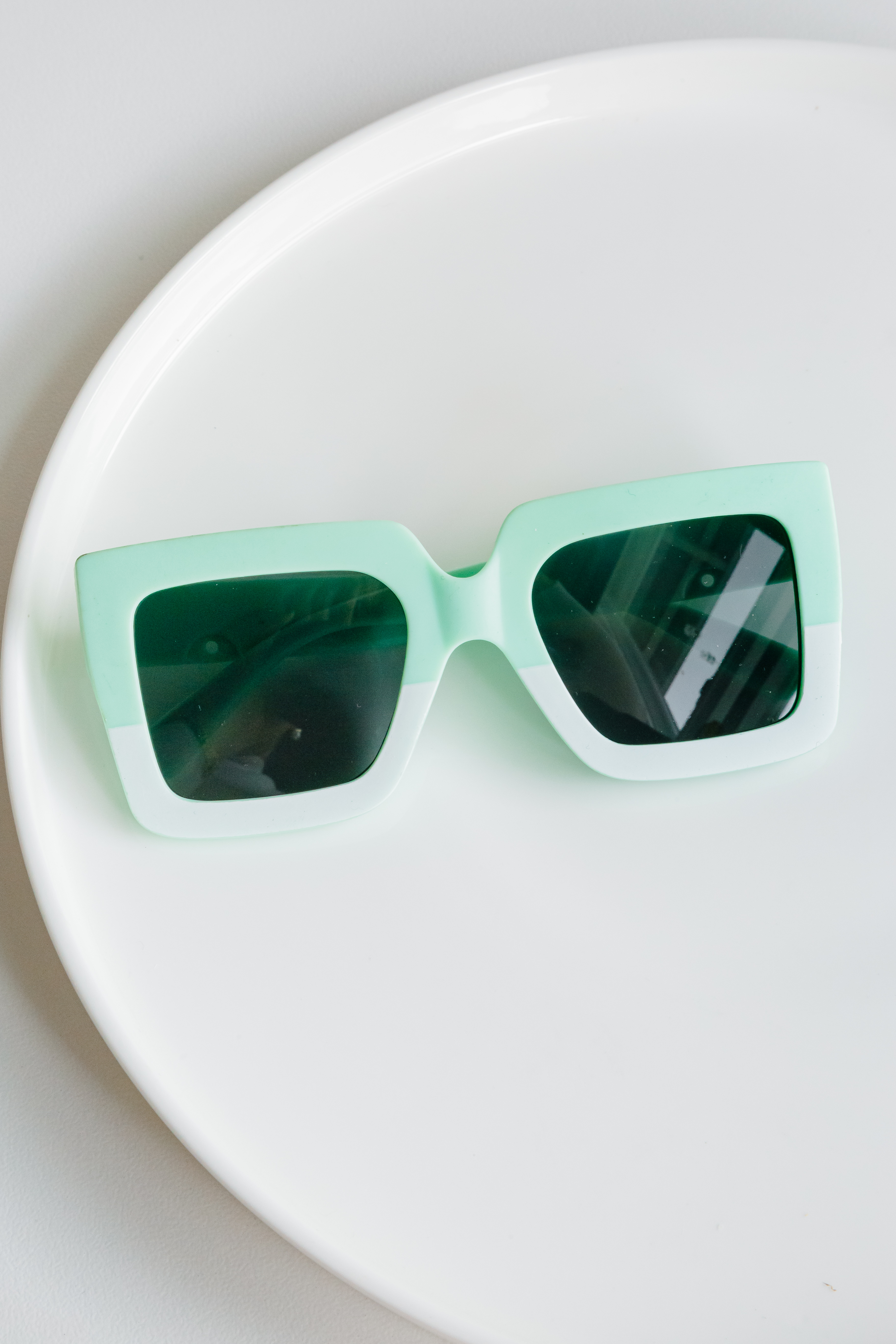 Square kids sunglasses. Available in ombre Peach and green.