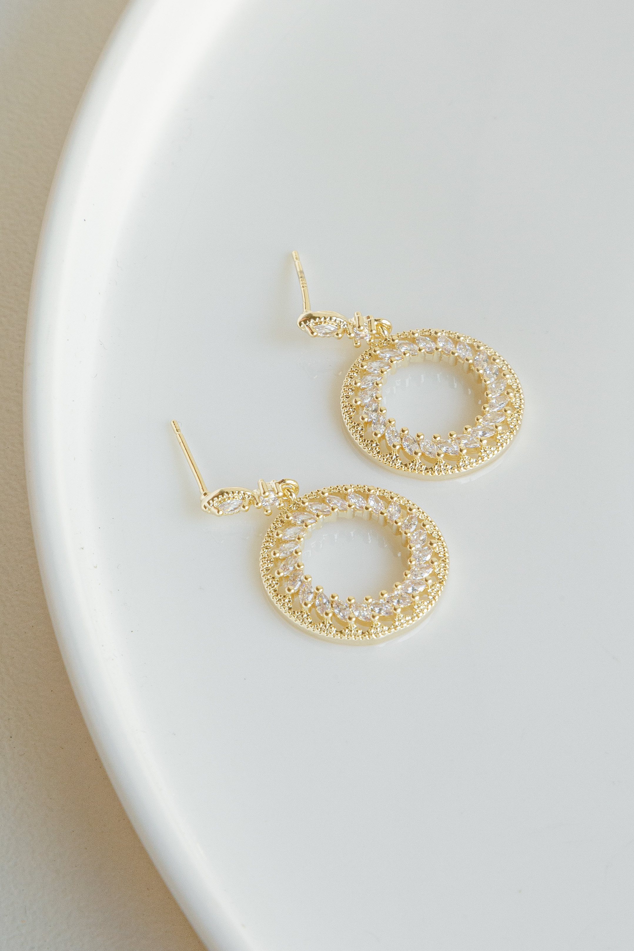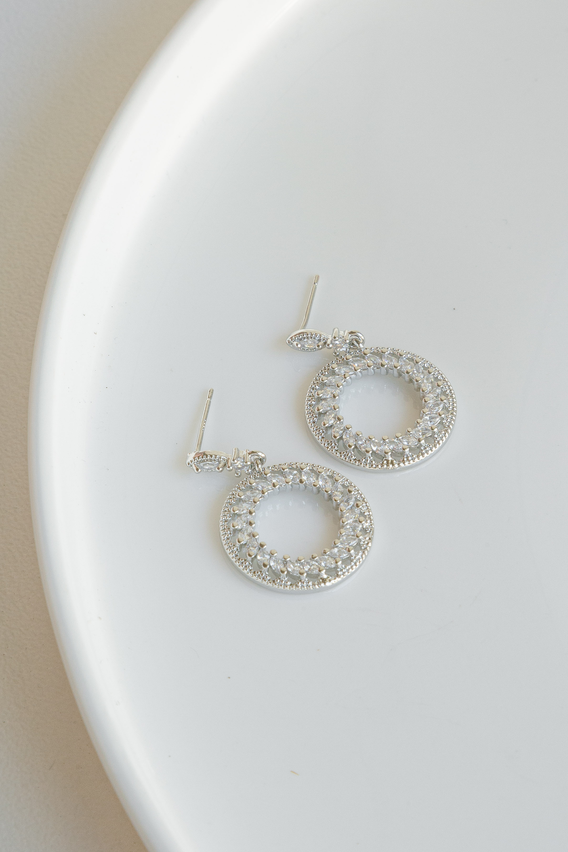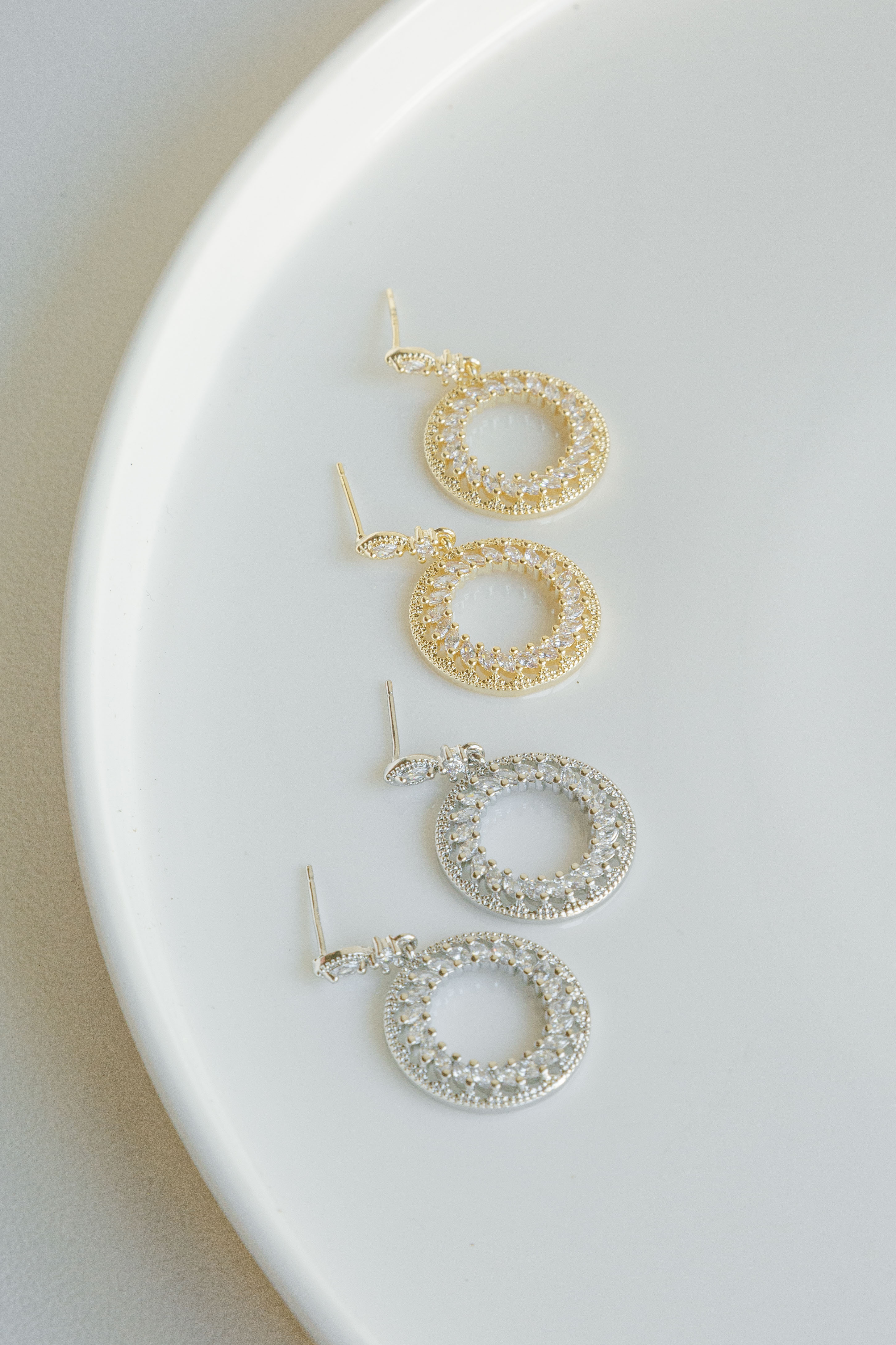 A classic stud earring with round diamond rhinestone drop. Available in Gold and Silver.