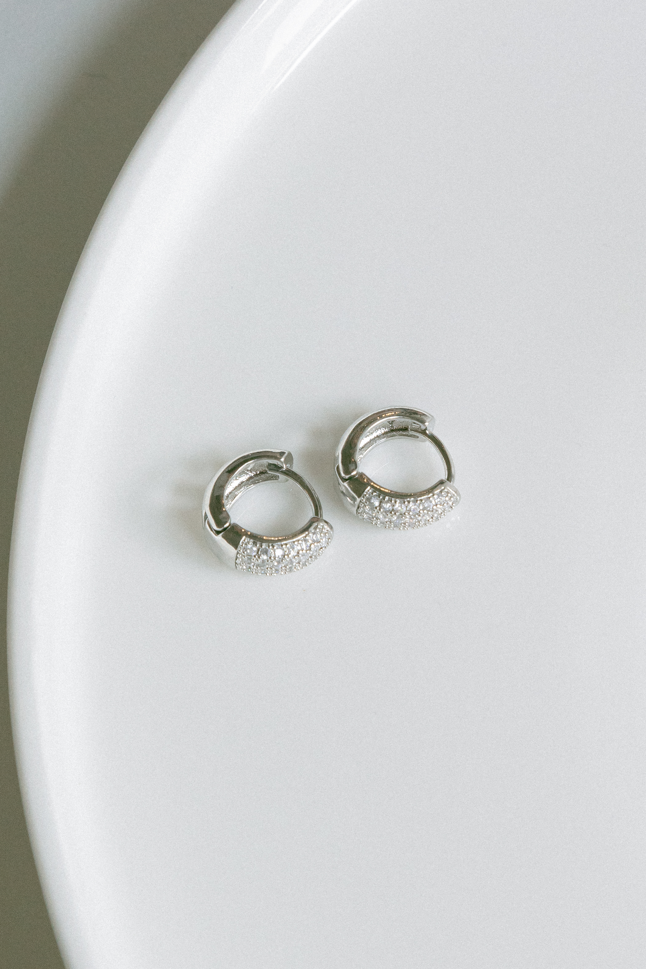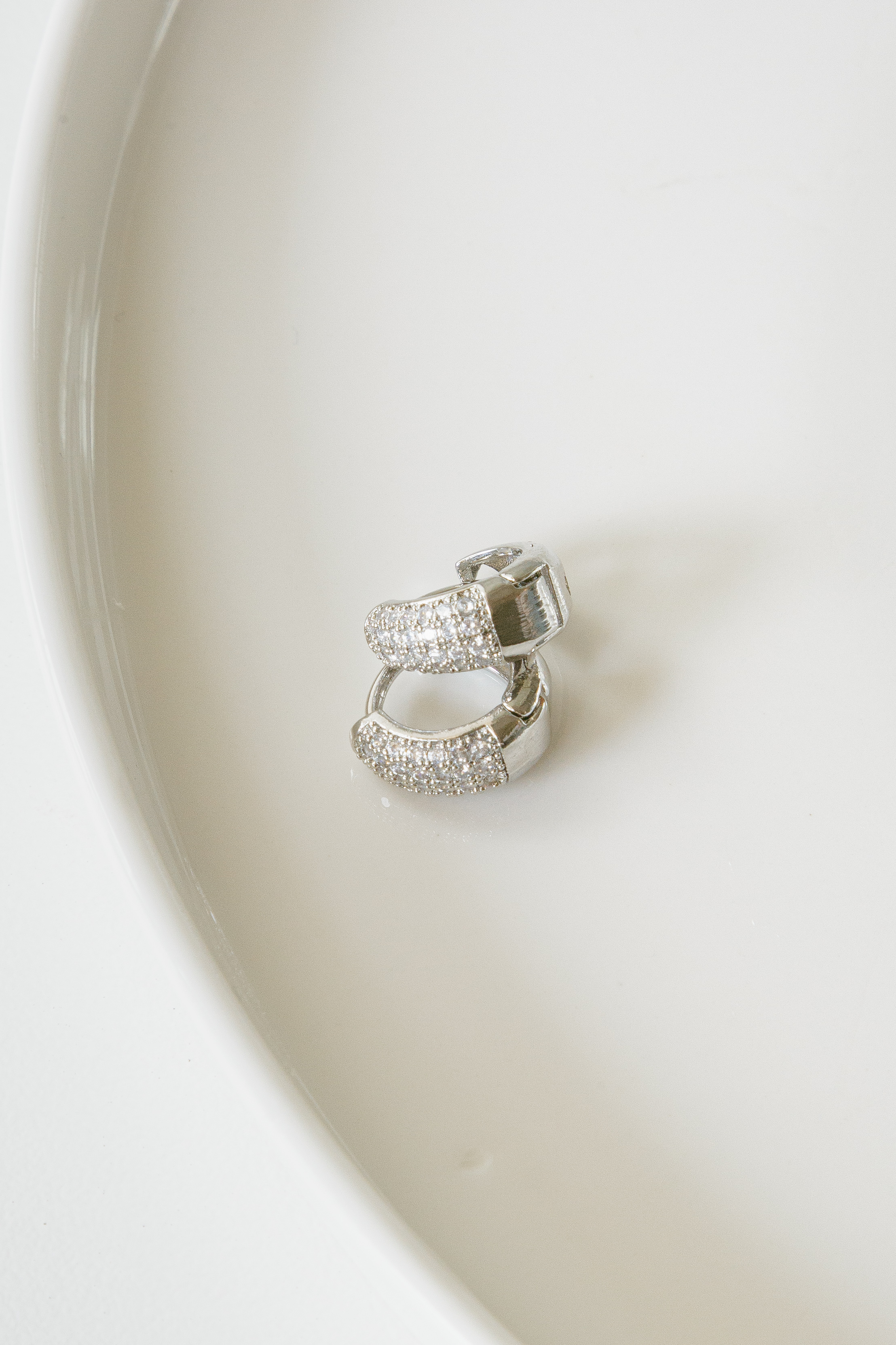 Thick silver diamante huggie.