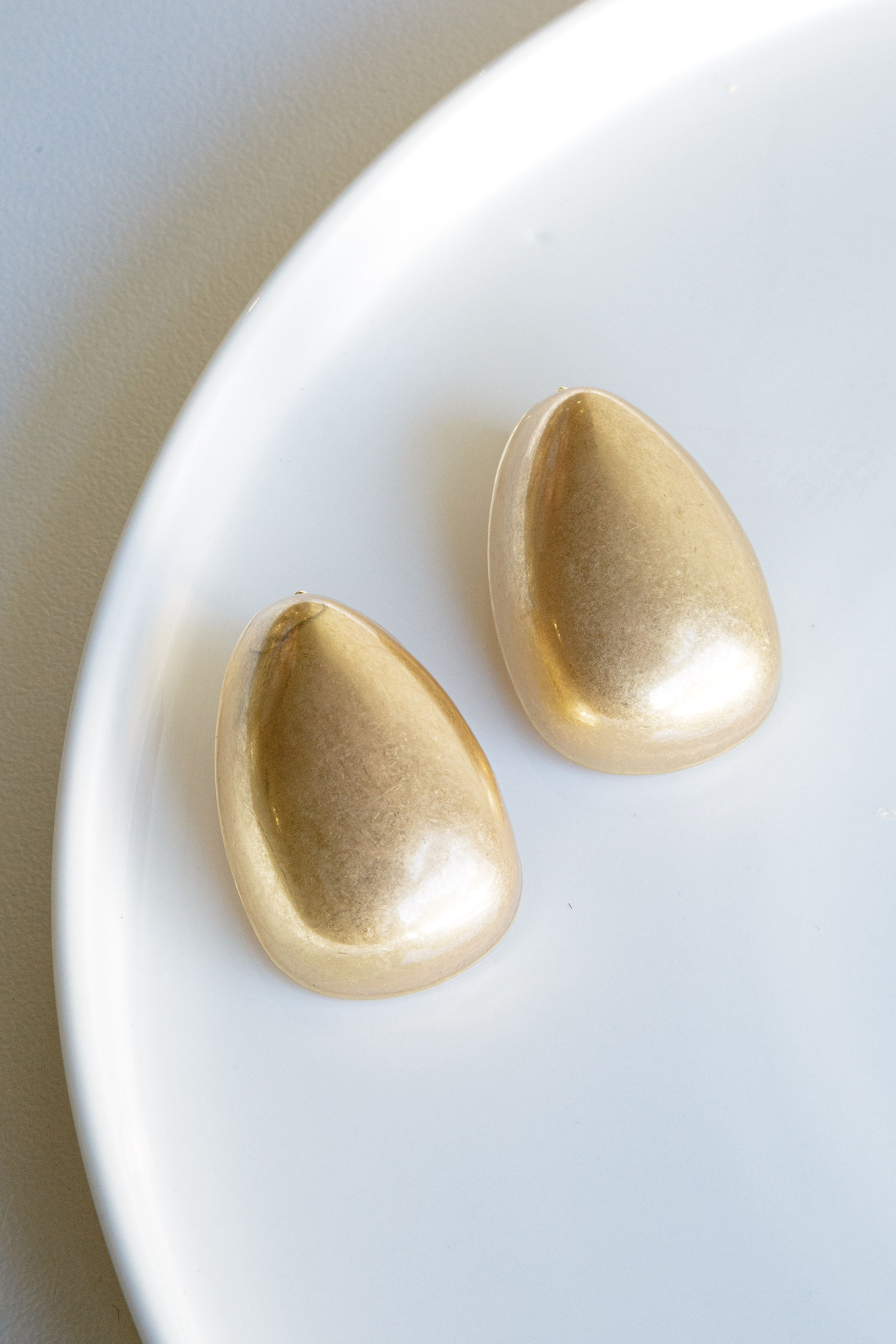 A large chunky egg shaped stud earring. Available in gold or silver.