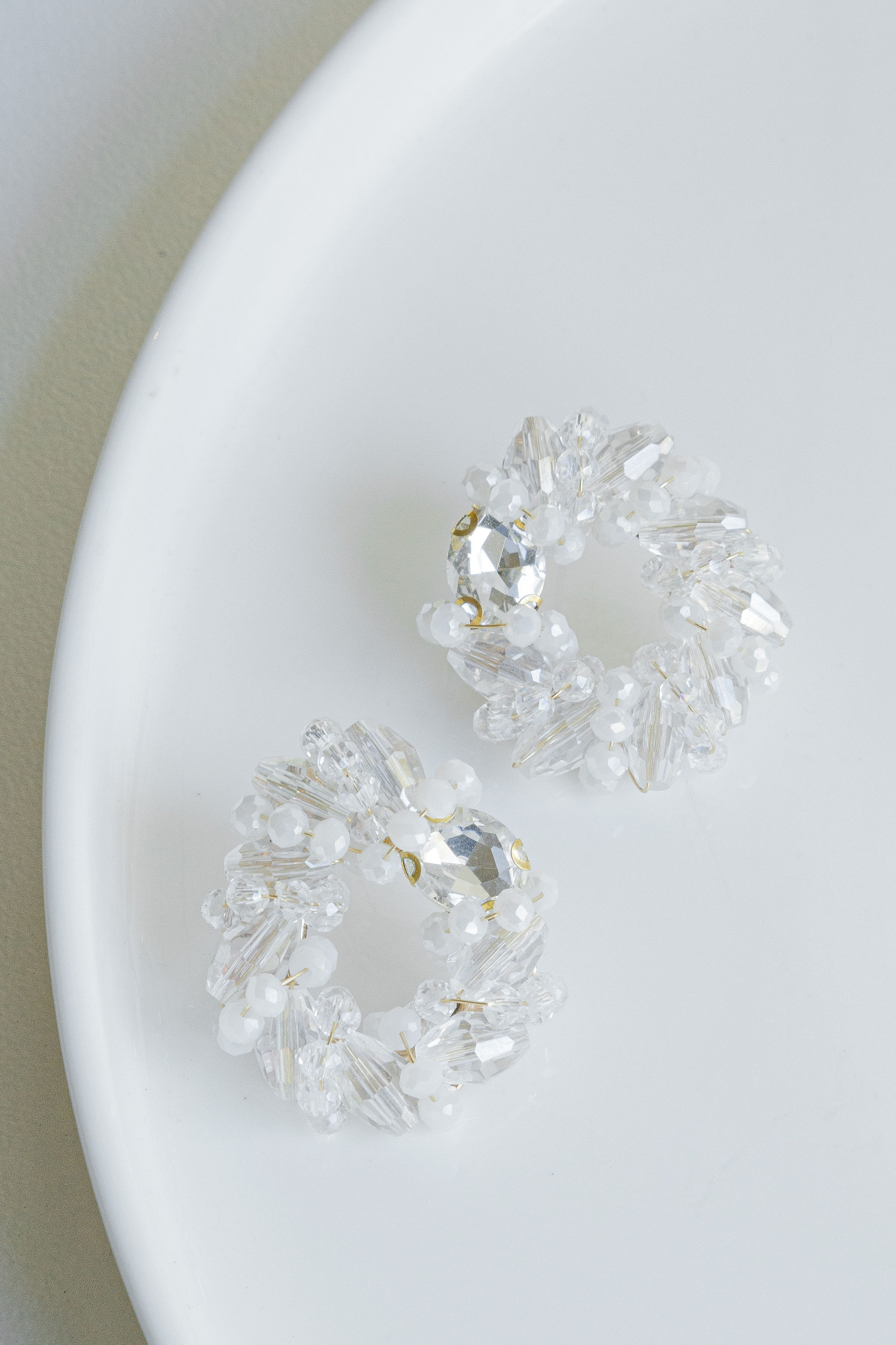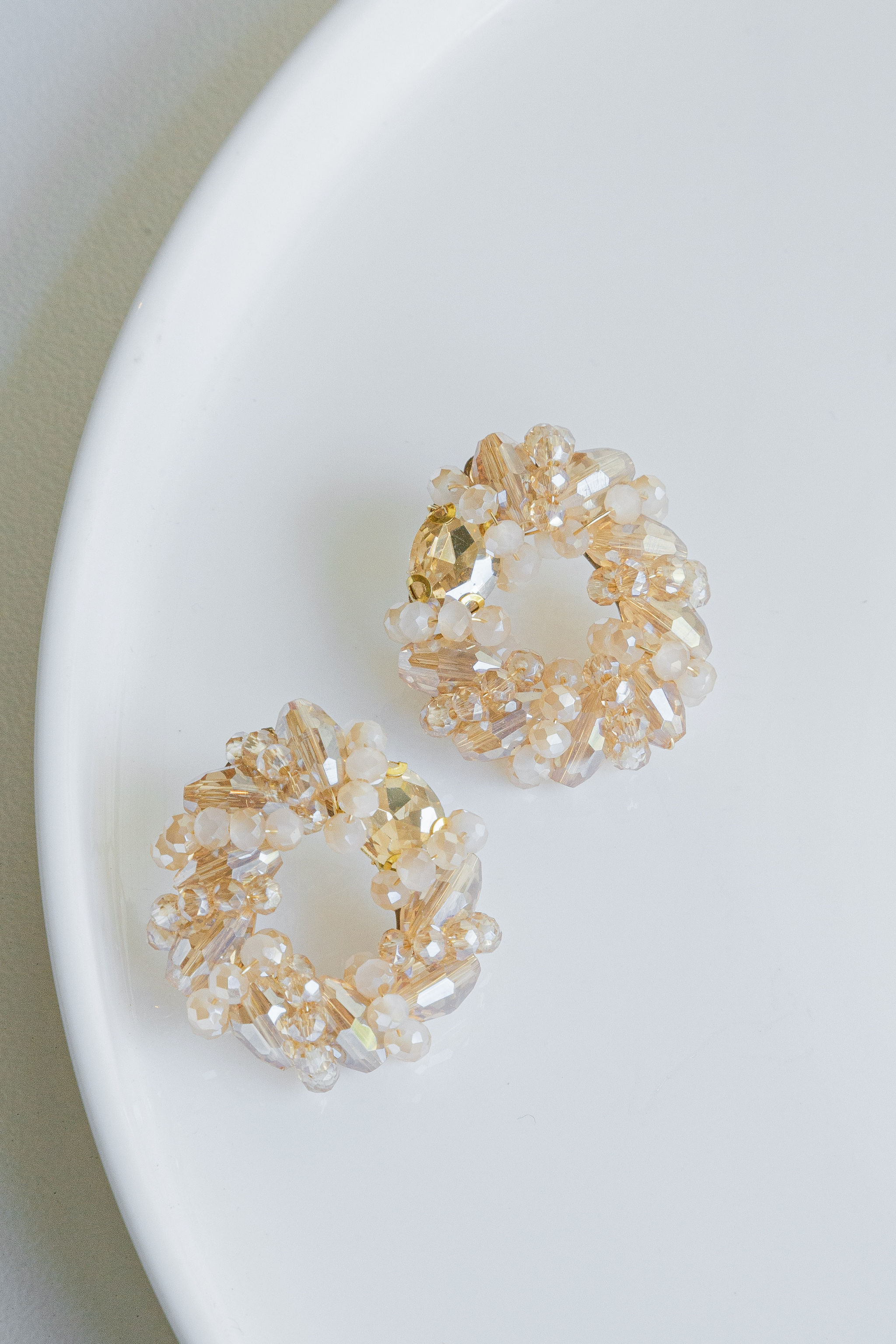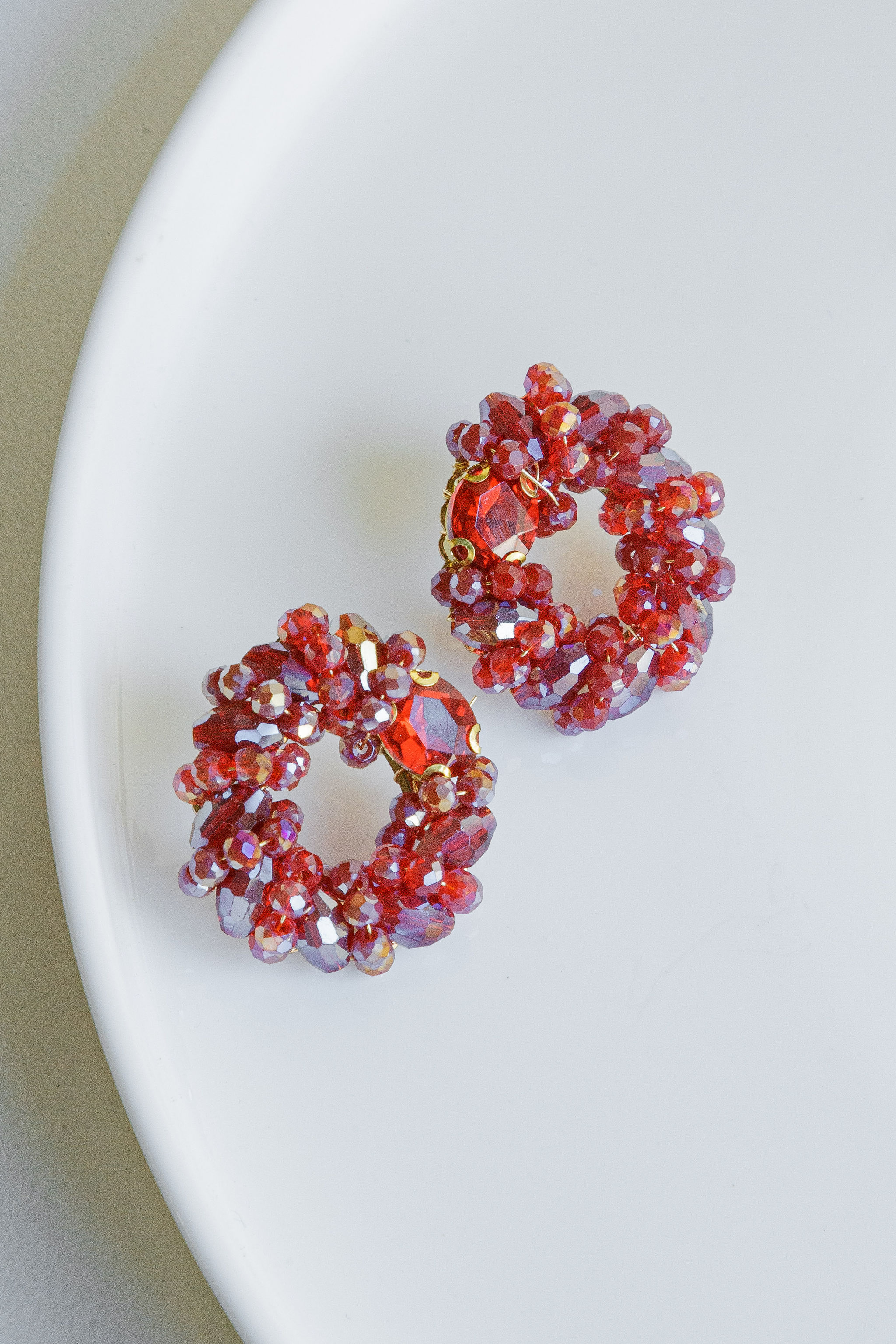 A beautiful round beaded stud earring. Available in black, white, red, green, beige and multi-coloured.