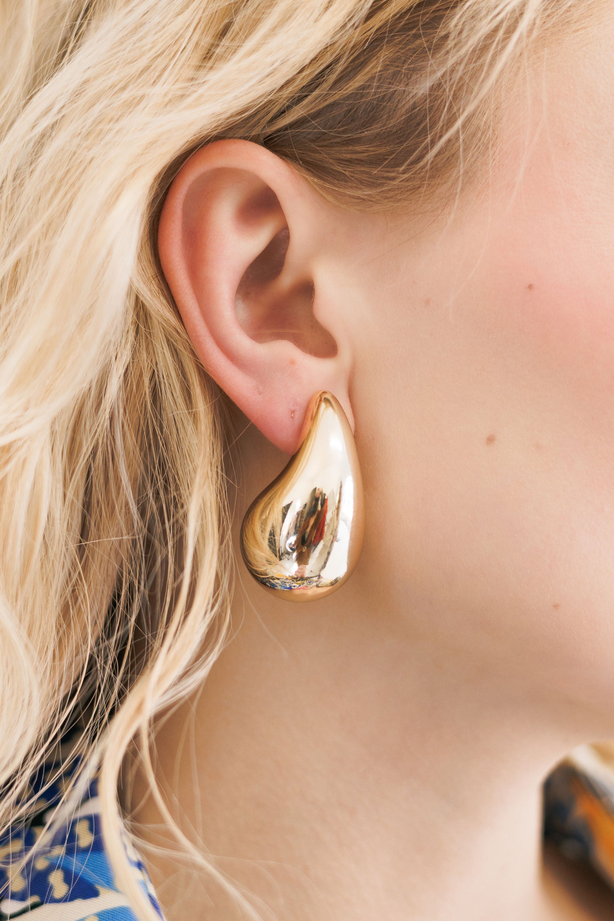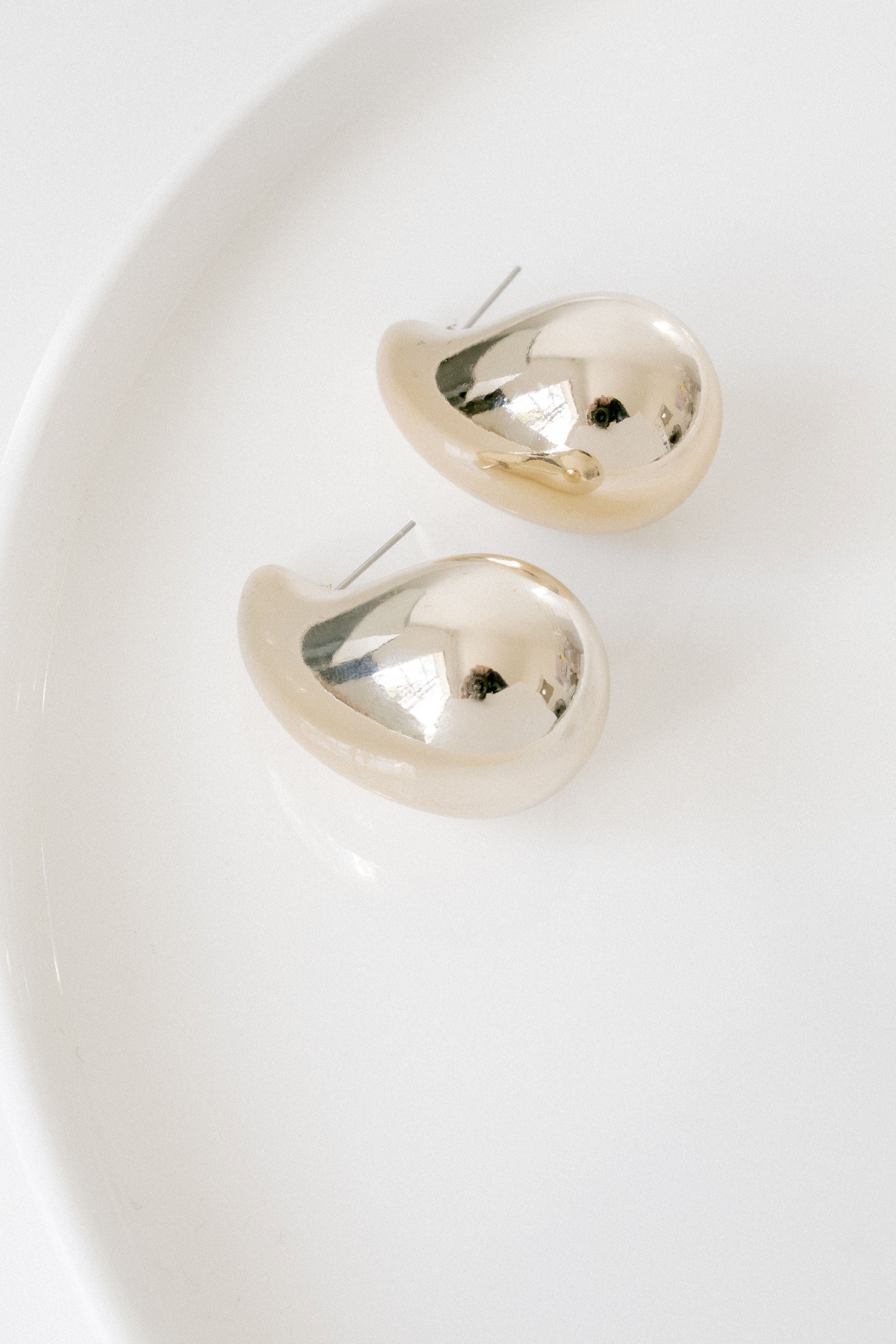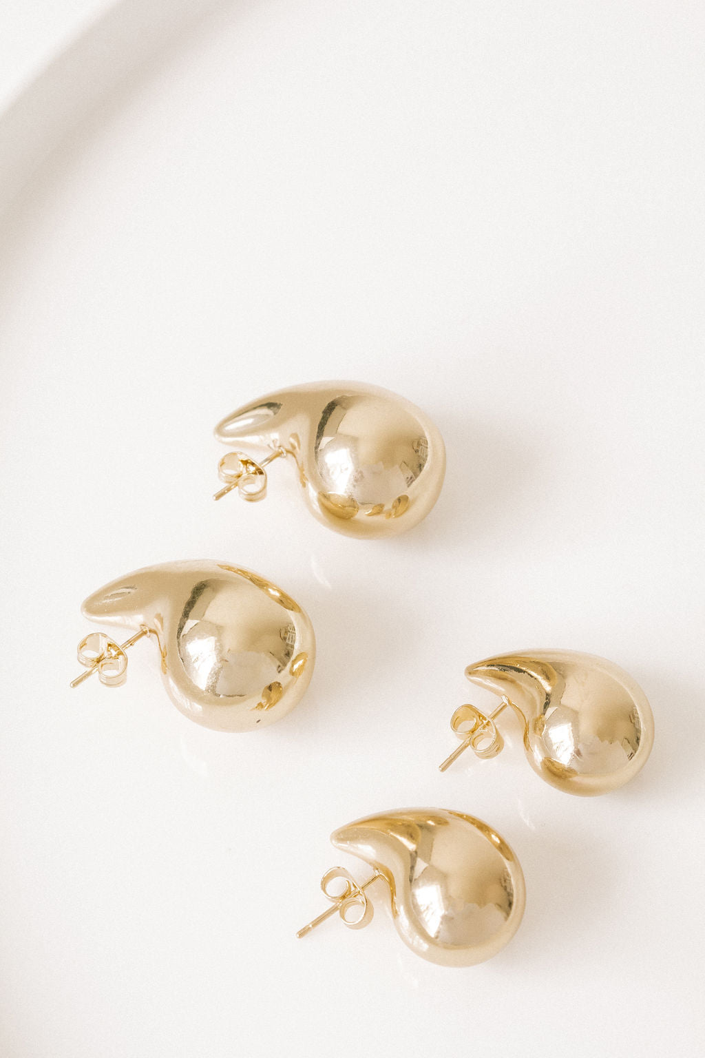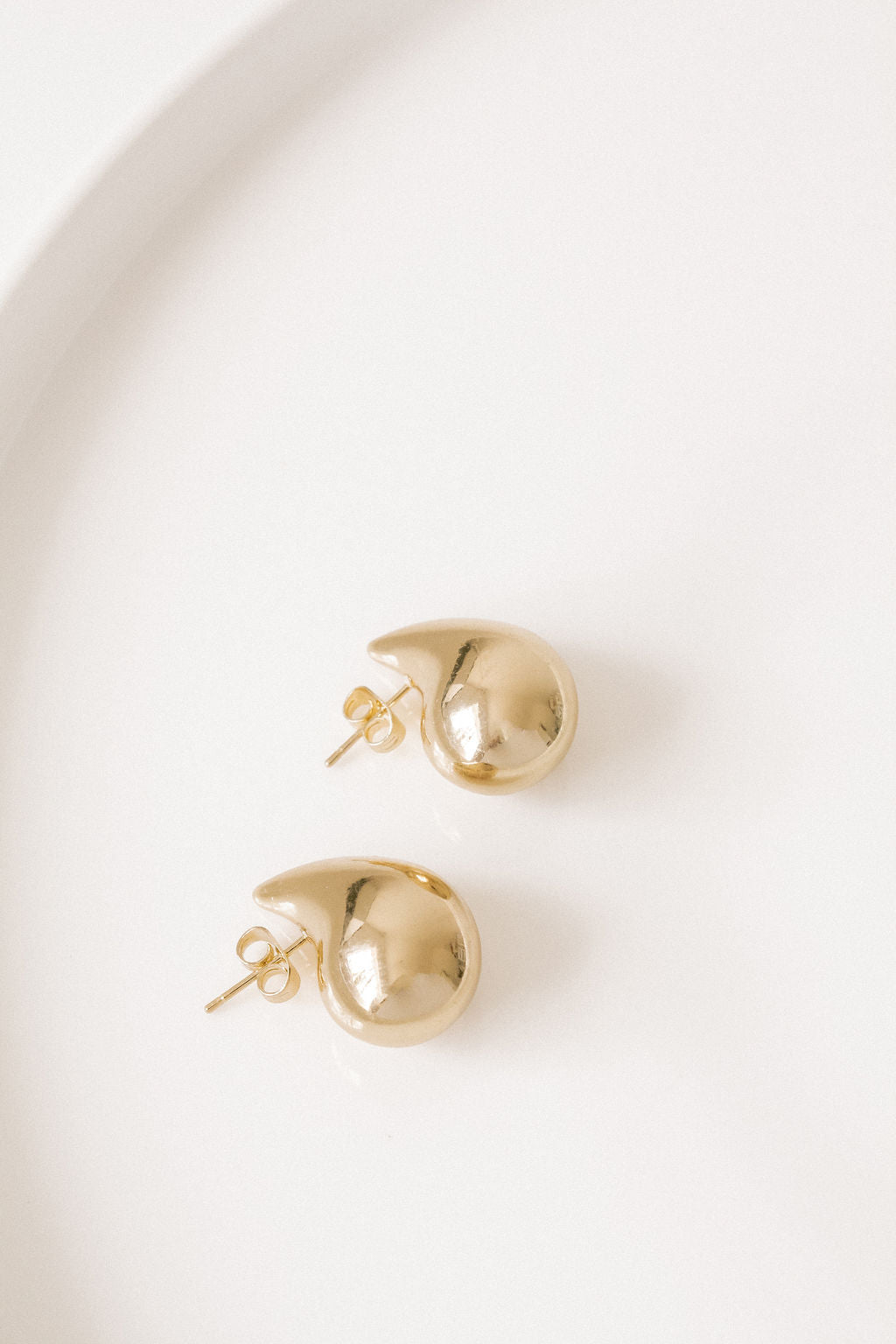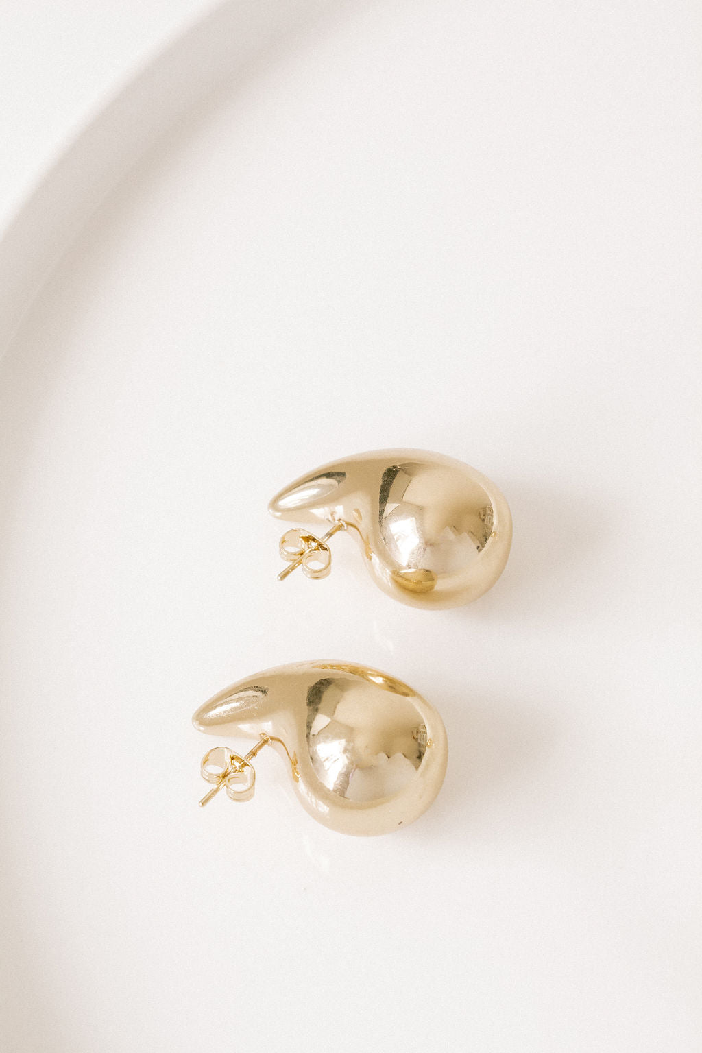 A minimalistic golden bubble stud earring.
