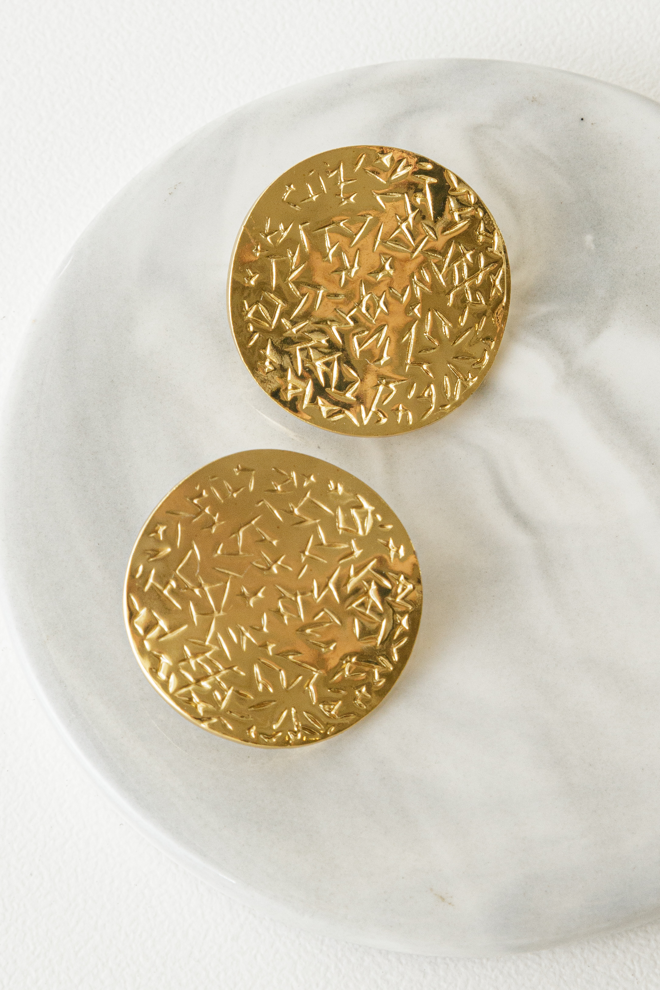 Round gold Stainless Steel textured earring.