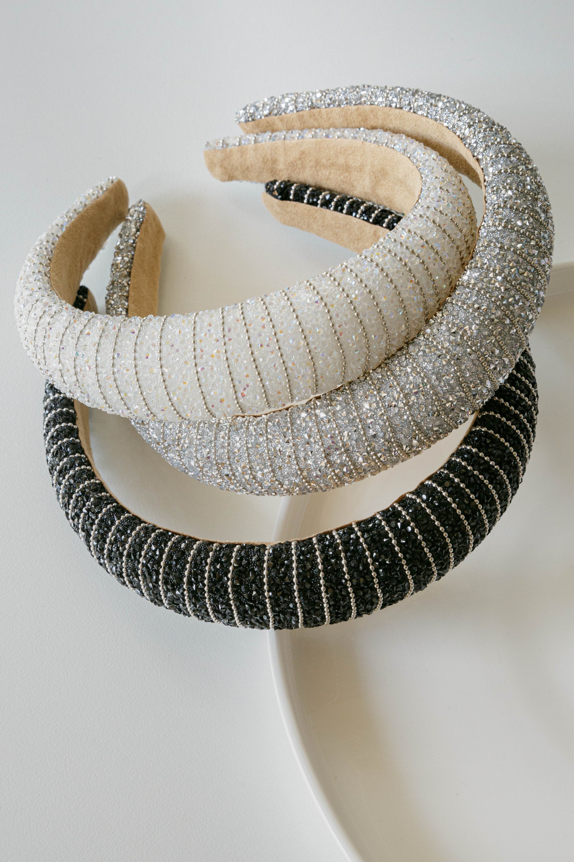 A rhinestone detailed alice band with a silver beaded detail. Available in black, white silver and charcoal.